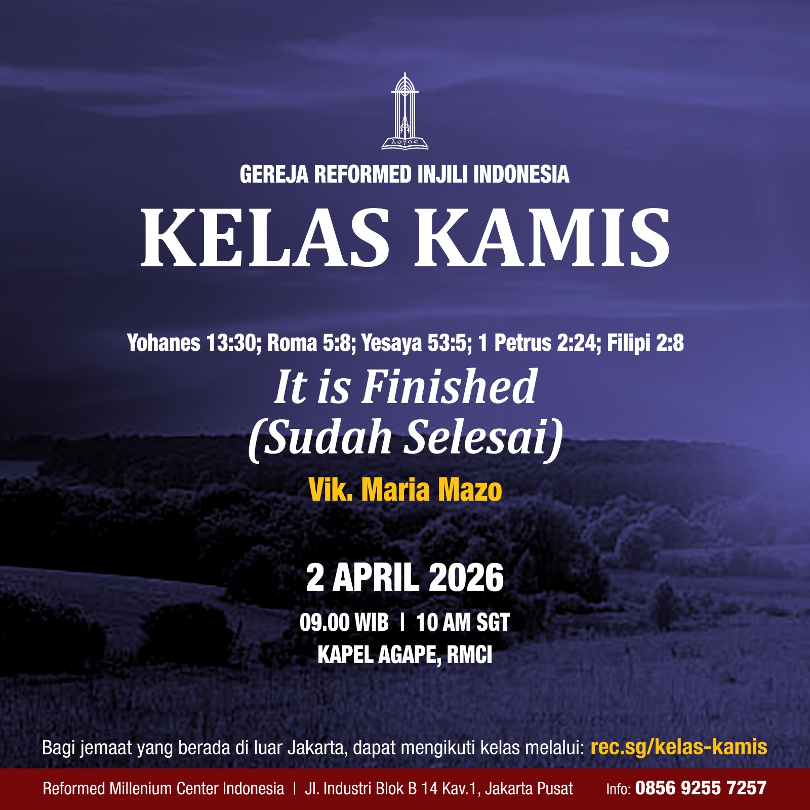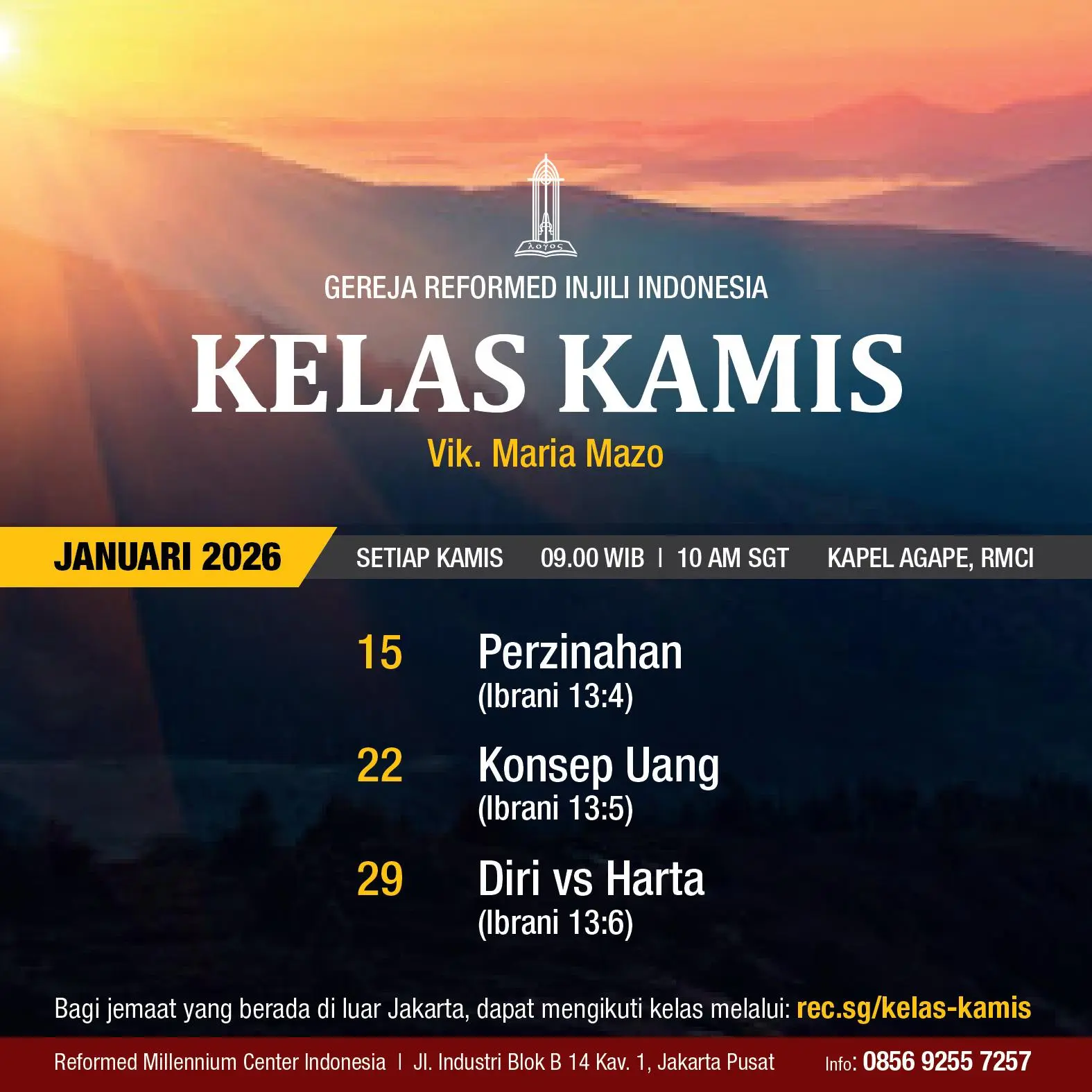 Pelayanan doa bersama bagi pekerjaan Tuhan, gereja Tuhan, dan umat Tuhan setiap hari Rabu.