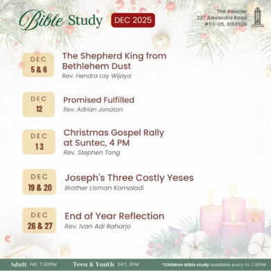 Kami mengundang jemaat sekalian untuk hadir dalam seri seminar khusus – TEMA: Serving Our King in Our WorldPembicara: Dr. Richard PrattTempat: True Way Presbyterian Church 156B Stirling Rd, Singapore 148947Sesi 1: Jumat, 13 Oktober 2023 Pk 7.30pmSesi 2: Sabtu, 14 Oktober 2023 Pk 4.00pmSesi 3: Sabtu, 14 Oktober 2023 Pk 7.30pm Pendaftaran (wajib): go.stemi.sg/drpratt Kita …