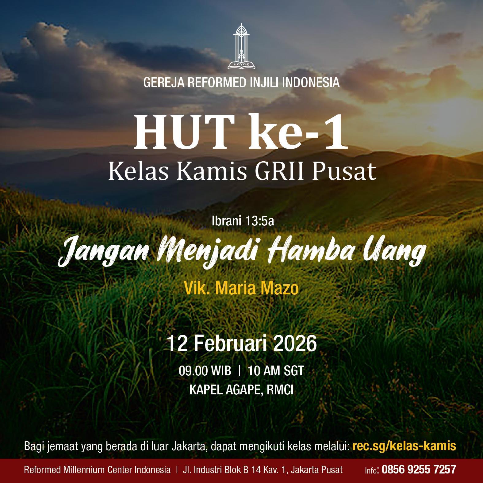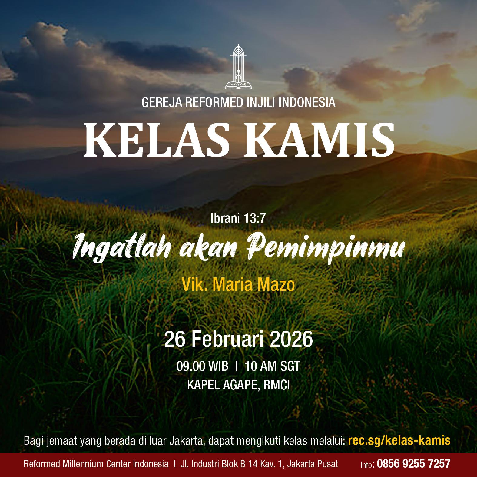 Kelas Kamis bisa diikuti secara live streaming melalui Zoom Meeting (meeting room dibuka mulai pk 8.45am WIB/pk 9.45am waktu Singapura).